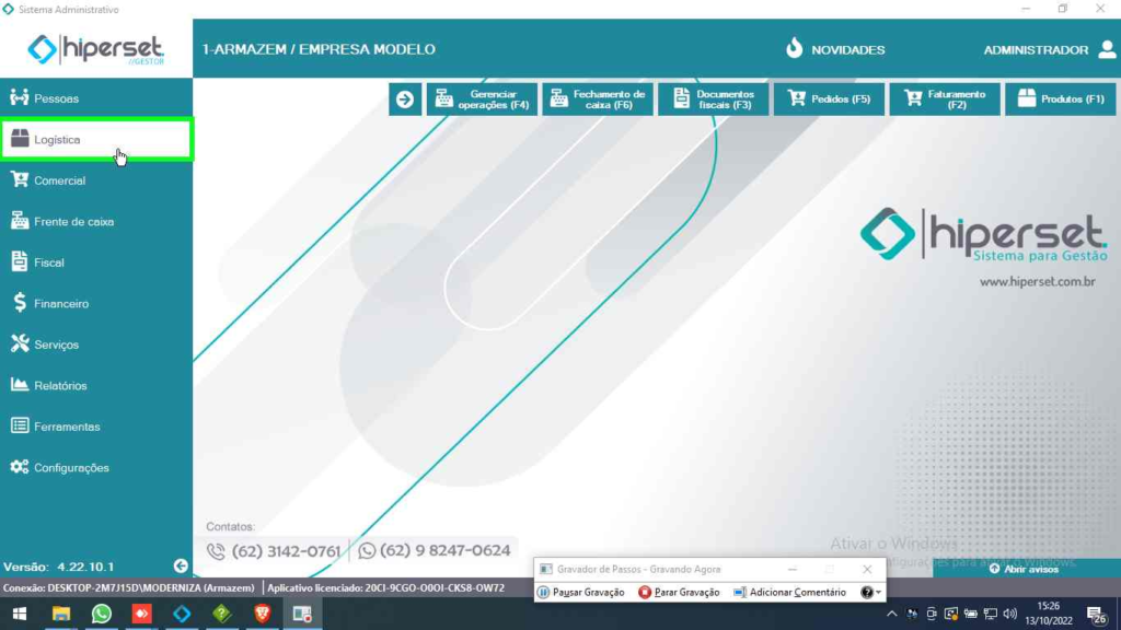 Passo 1: Clique no menu esquerdo em “Logística” .