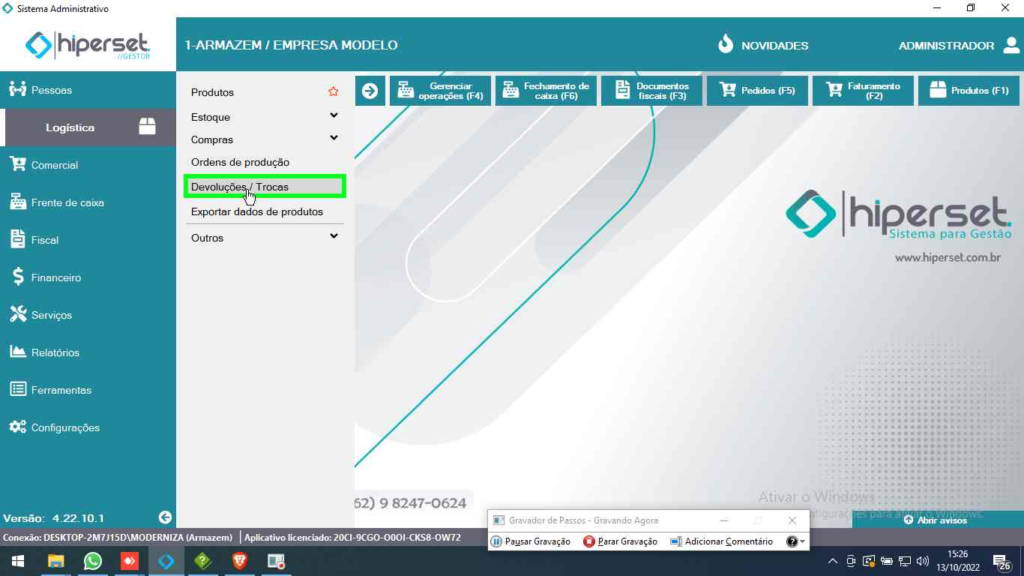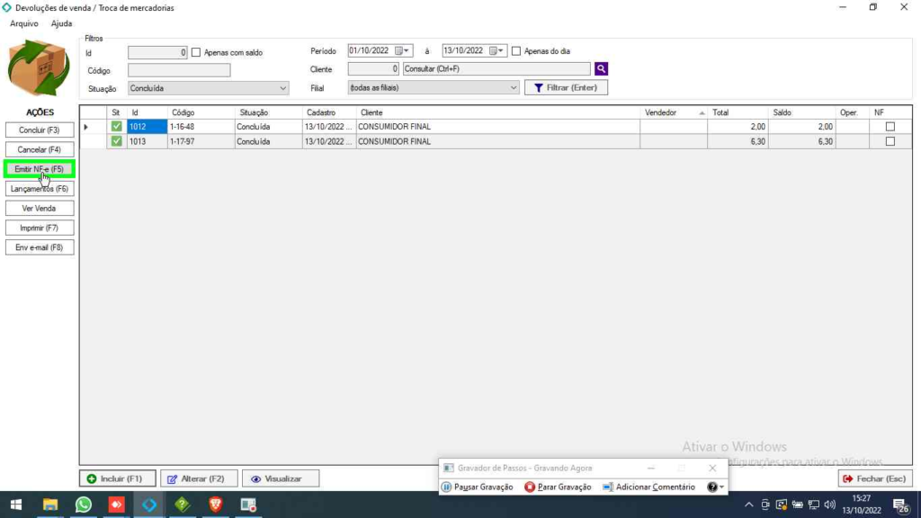 Passo 5: (Opcional) – Com a devolução concluída, agora você pode emitir uma Nota Fiscal Eletrônica de Devolução clicando “Emitir NF-e (F5)” .