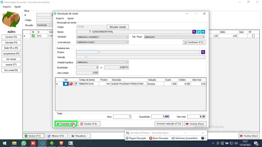 Após lançar todas as informações clique em “Concluir (F1)”.