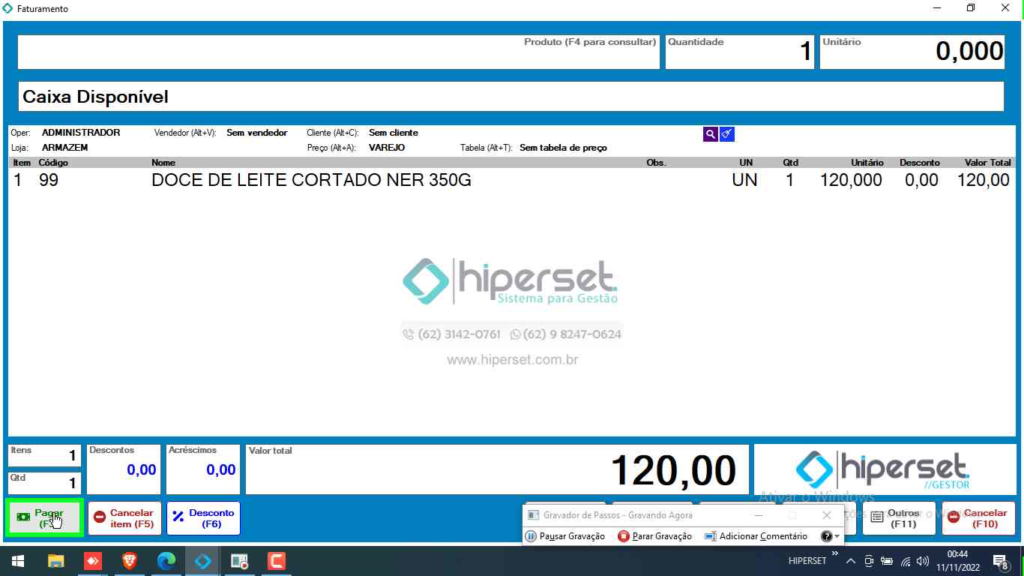 Passo 1: Após realizar a venda na tela de FATURAMENTO, clicar em PAGAR.