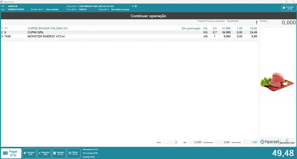 O Hipeset oferece um sistema para o frente de caixa que se destaca pela facilidade de uso. Com ele, o operador de caixa fecha a compra em poucos cliques, além de estar disponível para monitores touchscreen, tornando o uso ainda mais simples.