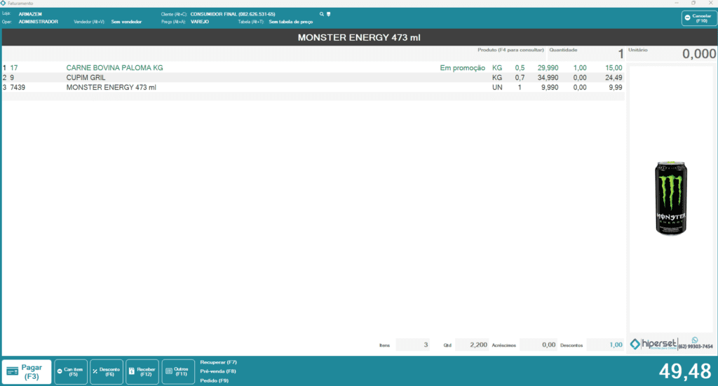 O Hipeset oferece um sistema para o frente de caixa que se destaca pela facilidade de uso. Com ele, o operador de caixa fecha a compra em poucos cliques, além de estar disponível para monitores touchscreen, tornando o uso ainda mais simples.